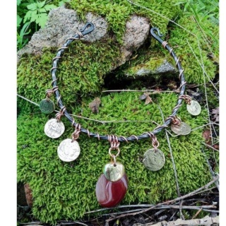 Je réalise de bracelets, pics à cheveux, boucles d'oreilles, bagues, torques, pendentifs, petites figurines, chapelets... en pièce unique et à la main.