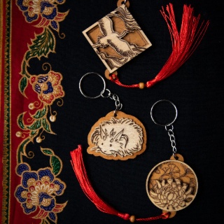 Sur mon stand, place à un voyage graphique au cœur de l’Asie ! J’y propose des illustrations à l’aquarelle qui explorent, dans une veine poétique, la nature foisonnante et les légendes d’Asie. Vous y trouverez également différents cadres en bois gravés, mêlant modernité et esthétique japonaise. Je présente aussi des boîtes à thé habillées de motifs sérigraphiés par mes soins, en écho à certains symboles clés de l’esthétique nippones et chinoise. Elles sont accompagnées de tasses en verre gravées, pensées comme un prolongement de ces univers graphiques.