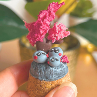 J’aime imaginer et donner vie à de petits mondes poétiques, que ce soit à travers mes cloches remplies de familles de cailloux ou mes bijoux en forme de chats adorables.
